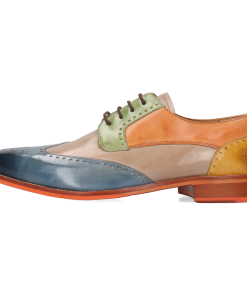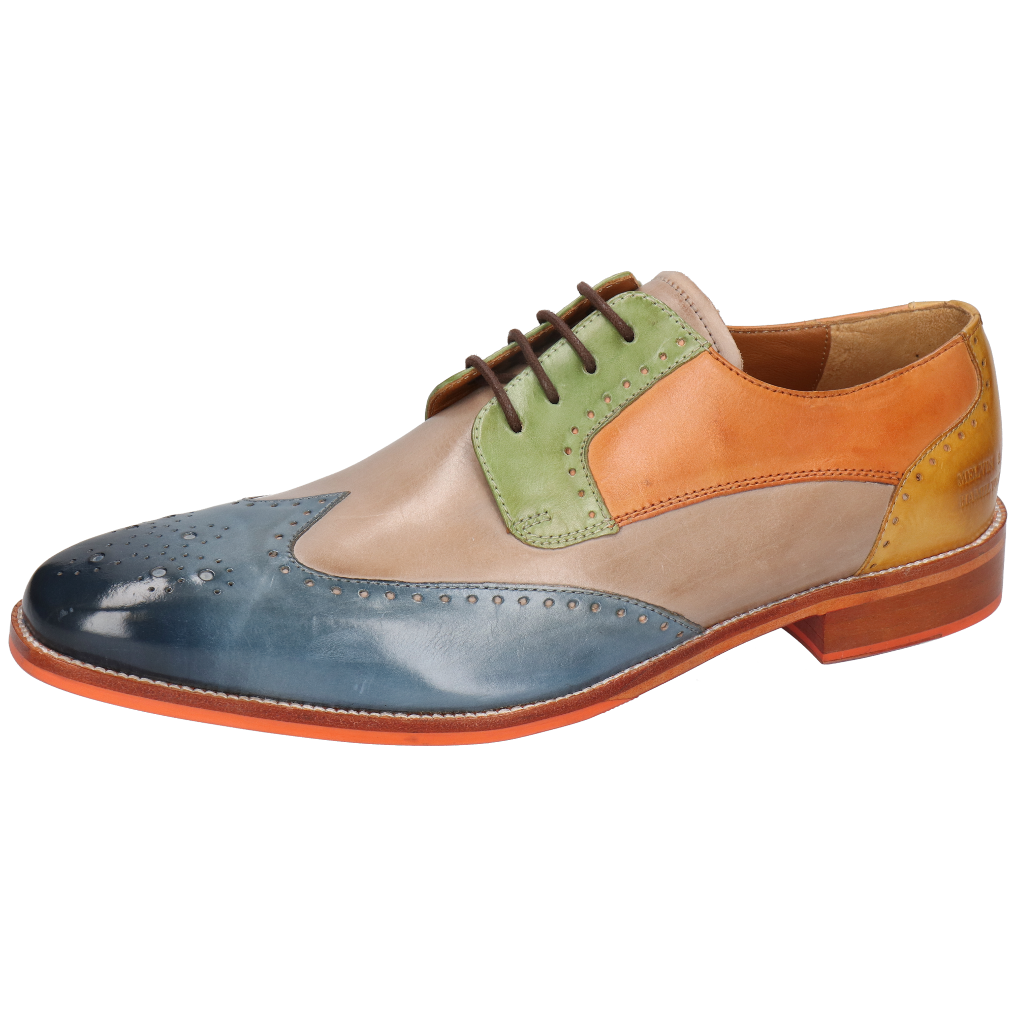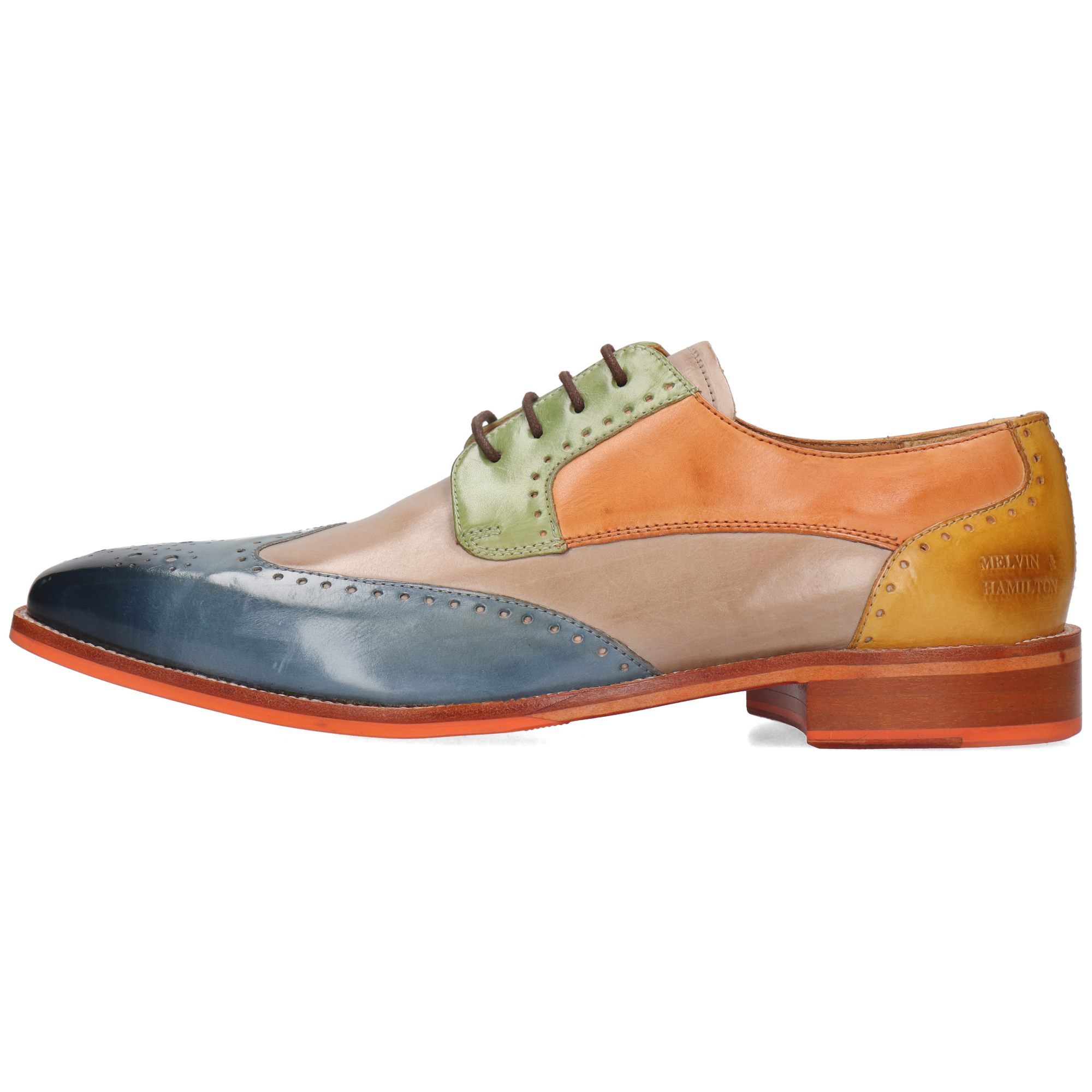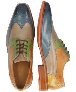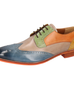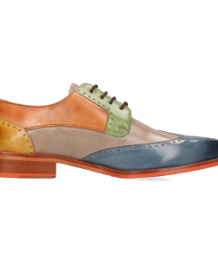 Fall for the spring-summer collection of men’s leather derbies by Melvin& Hamilton. These comfortable classic lace-up shoes will go with any style, for all the occasions and need to integrate your wardrobe for the spring-summer season. With these Jeff 14 derby shoes , you are choosing quality! Stand out from the crowd and treat yourself to this pair of derbies with a square toe in multi cow leather, which will add a little more fun to your look, welcoming the warmer weather! Cultivate your originality with these urban shoes in trendy colours and patterns, and their orange leather& rubber sole. All in high-quality leather, of course.