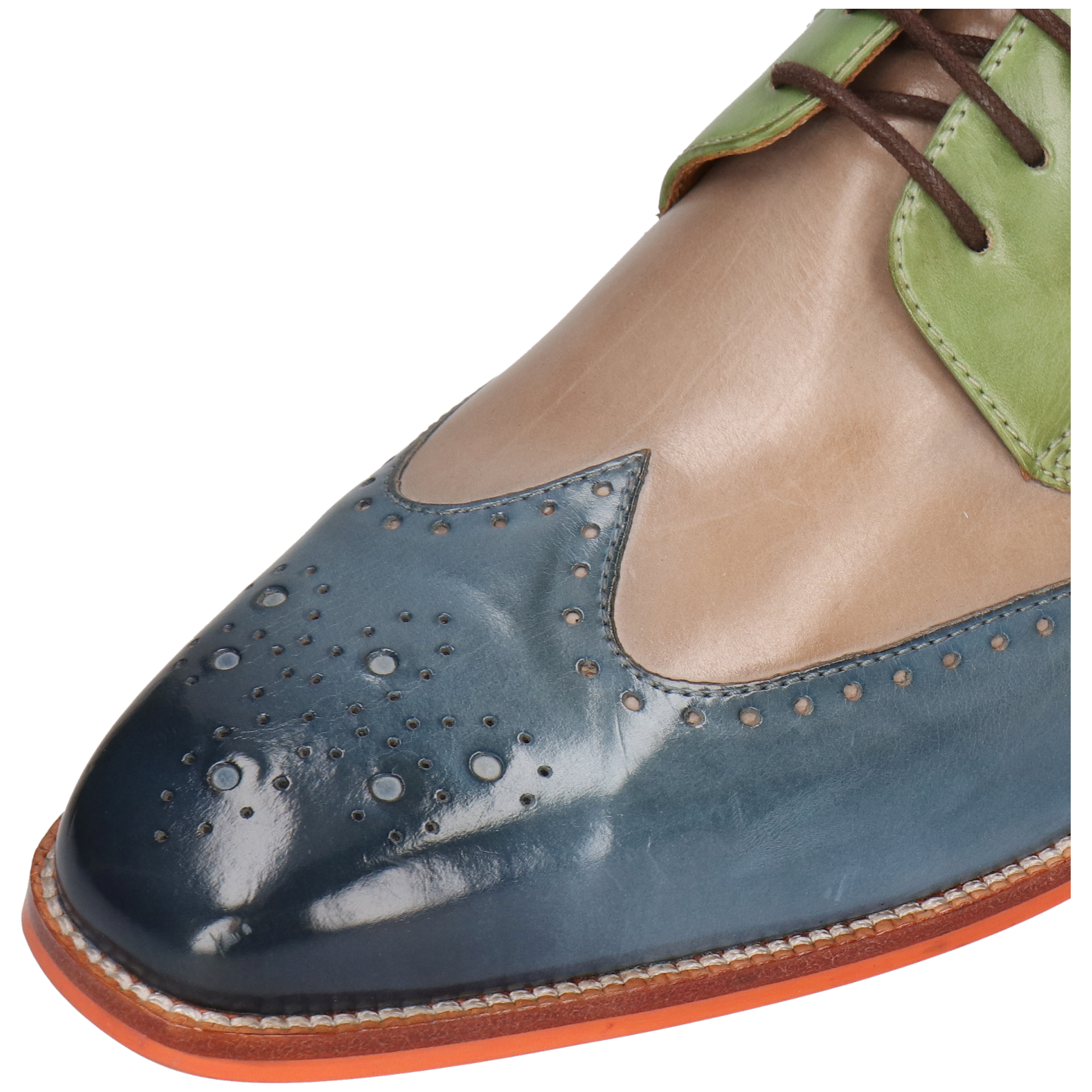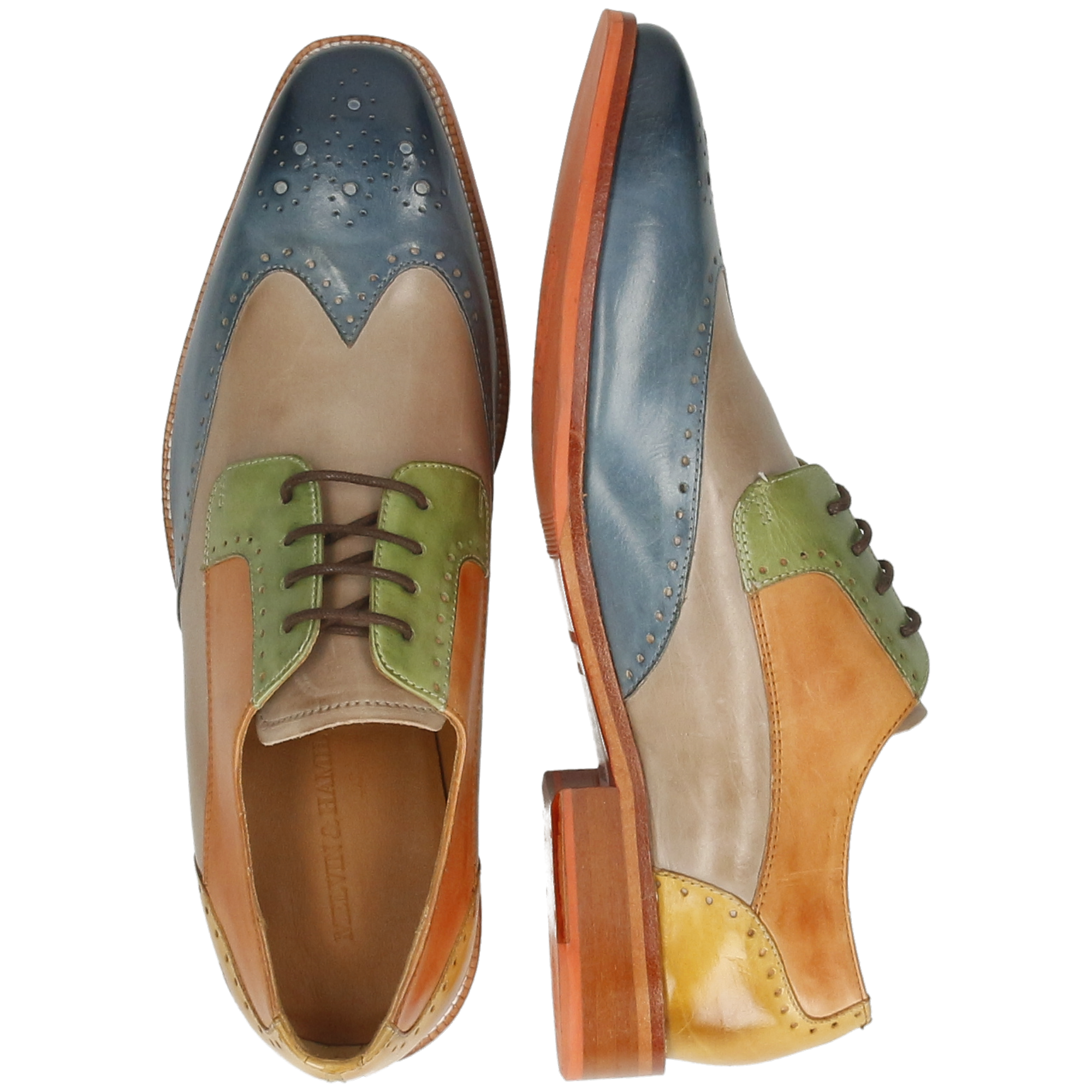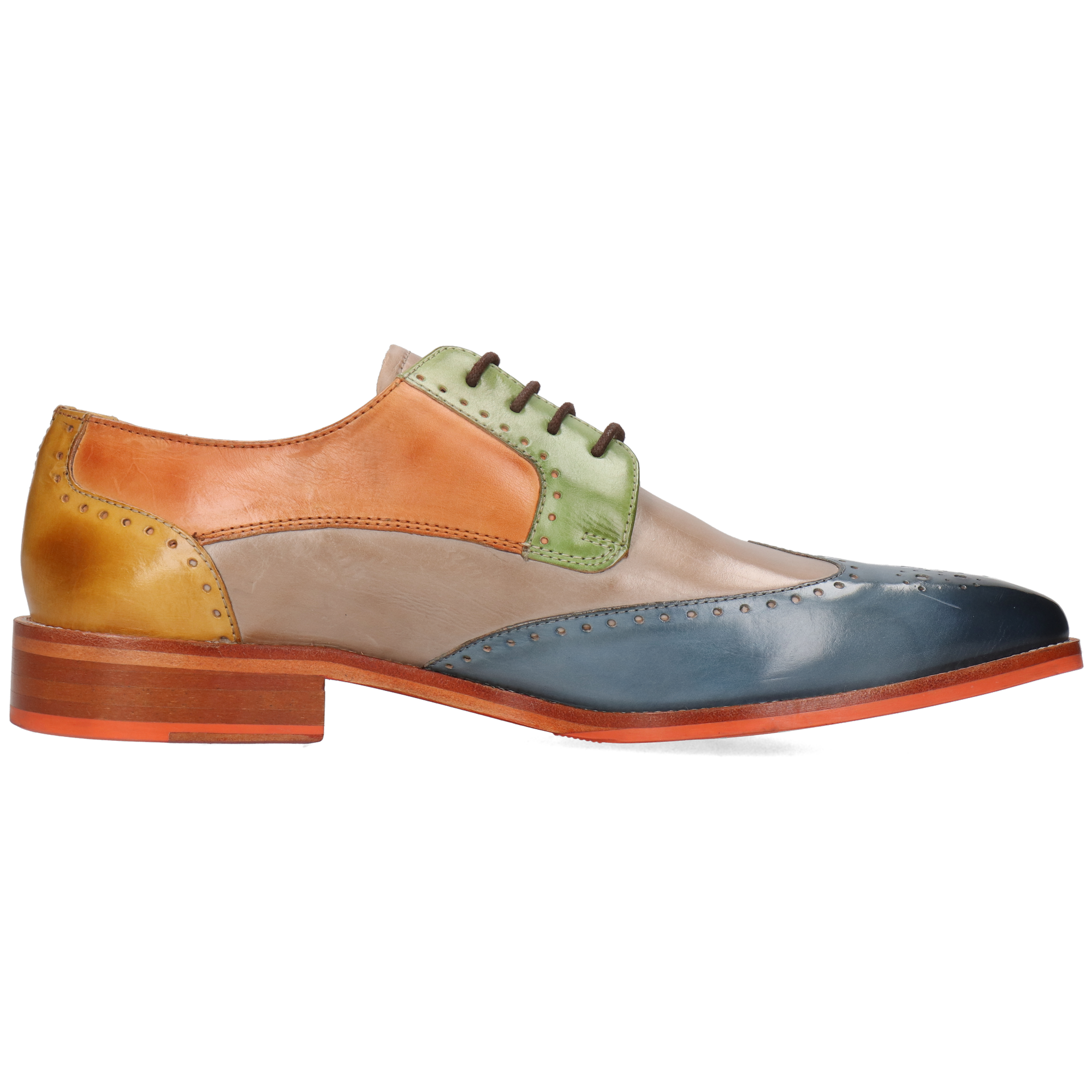 Fall for the spring-summer collection of men’s leather derbies by Melvin& Hamilton. These comfortable classic lace-up shoes will go with any style, for all the occasions and need to integrate your wardrobe for the spring-summer season. With these Jeff 14 derby shoes , you are choosing quality! Stand out from the crowd and treat yourself to this pair of derbies with a square toe in multi cow leather, which will add a little more fun to your look, welcoming the warmer weather! Cultivate your originality with these urban shoes in trendy colours and patterns, and their orange leather& rubber sole. All in high-quality leather, of course.